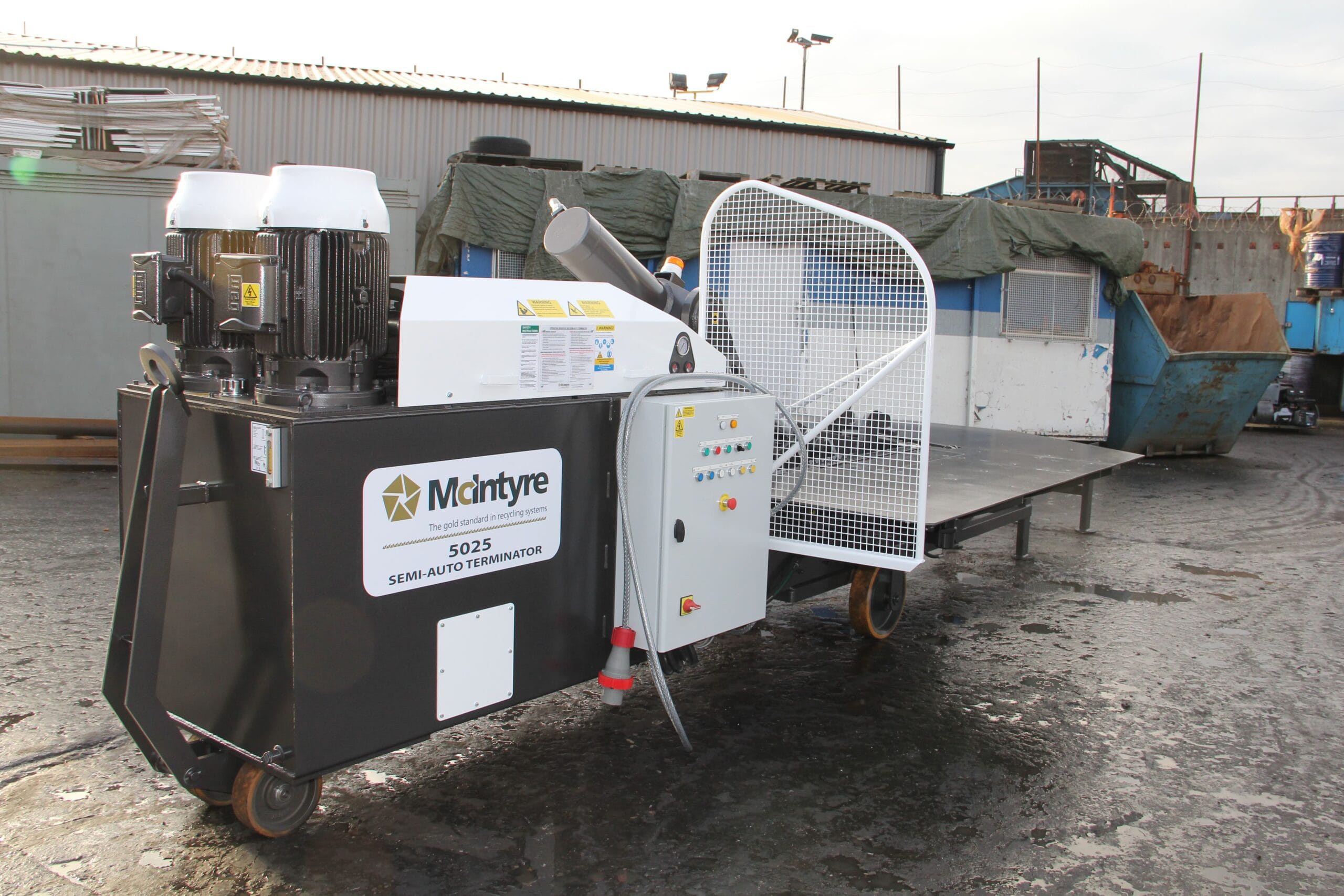 The McIntyre 5025 SAT (Semi-Automatic Terminator) baler is a powerful and reliable machine designed for baling a wide range of non-ferrous metals and scrap materials. Built to handle demanding recycling environments, the 5025 SAT produces dense, transportable bales that improve storage, handling and scrap value.