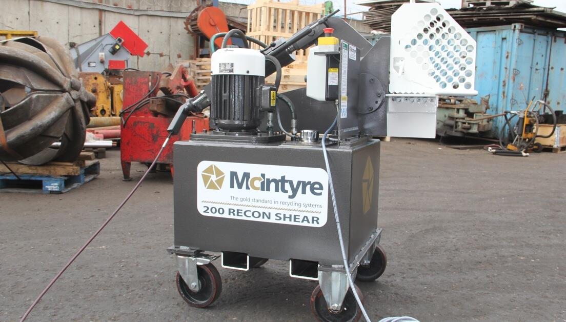 McIntyre’s long-term experience in hydraulic equipment manufacture has enabled us to build an 8” shear with a staggering cutting force – much higher than other machines on the market today. Although equipped with only an 8” blade, the high shear force and wide tip to tip opening on the 200 means that it can deal efficiently with a whole range of non ferrous cleaning and sizing operations – in particular larger diameter electric cables and valves. In most cases – if your metal will fit into the jaw of the 200, then this machine will cut it.