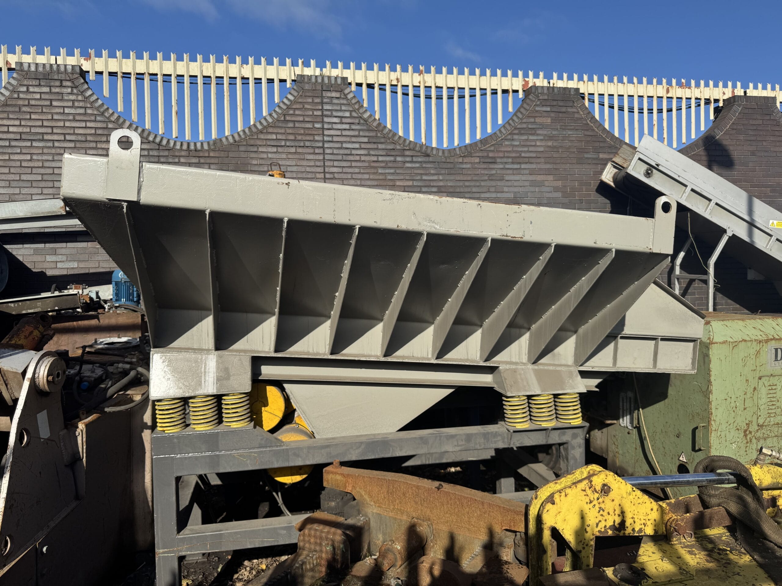 A used vibrating feed hopper is designed to store bulk material and feed it into downstream recycling equipment at a controlled rate. By using vibration to regulate material flow, these systems help prevent bridging, blockages and inconsistent feeding.